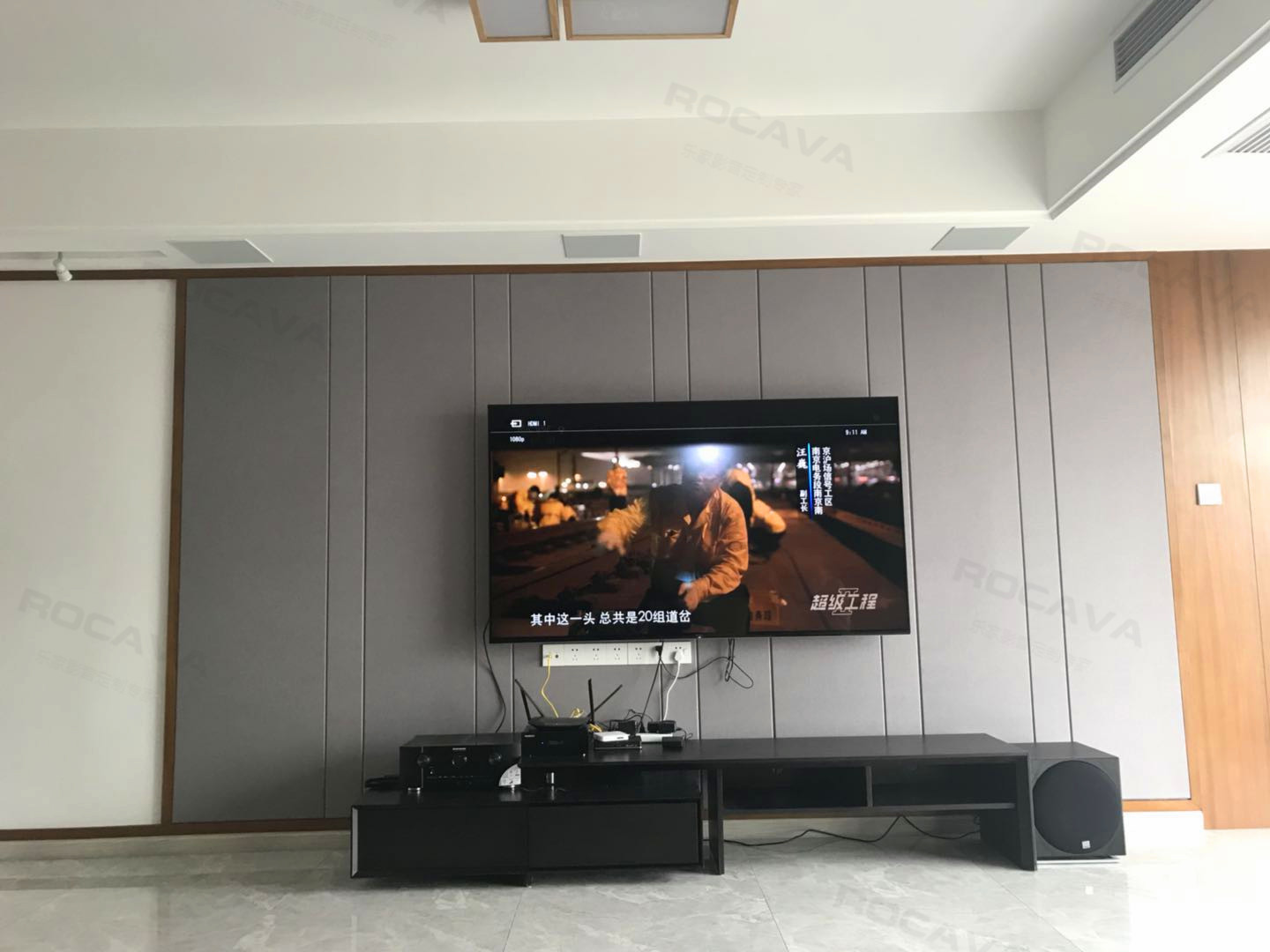 這是一個體育世家,作為一個體育人,在日常放松時,聽聽音樂、看看電影,不失為一個很好的解壓方式。客戶在設計當初提出一個想法,不僅僅只在客廳實現影音功能,在廚房做飯時,在臥室休息時,都可以聽聽喜歡的音樂,或者收聽下電臺。為此,我們專門設計了2個分區的音響系統,同時滿足客戶的需求?。